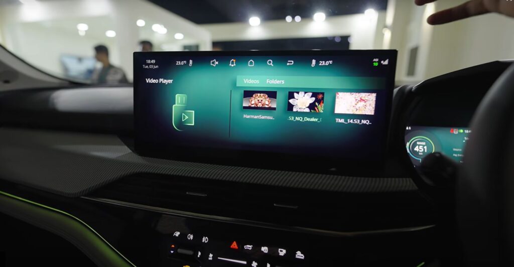Tata Harrier EV में हमें सैमसंग की तरफ से आने वाली QLED टचस्क्रीन टच स्क्रीन देखने को मिलती है, और 6 एयरबैग्स, चारों पहियों में डिस्क ब्रेक, टायर प्रेशर मॉनिटरिंग सिस्टम (TPMS), e-Valet, e-IRVM और Summon Mode जैसे Tata Harrier EV में स्मार्ट फीचर्स देखने को मिलते है।